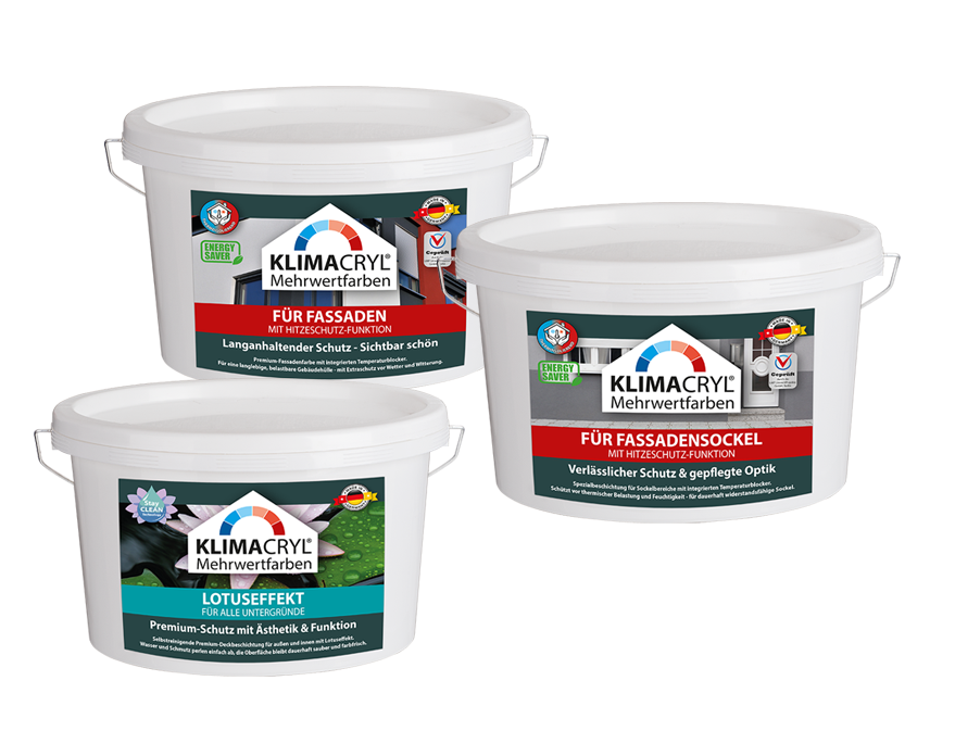 KLIMACRYL Fassadenfarben bieten exzellenten Witterungsschutz und höchste Farbkonstanz – auch bei intensiver Sonneneinstrahlung. Sie bewahren die Eleganz der Oberfläche, schützen nachhaltig vor Feuchtigkeit und Umwelteinflüssen und verleihen jeder Fassade eine dauerhaft repräsentative Ausstrahlung.