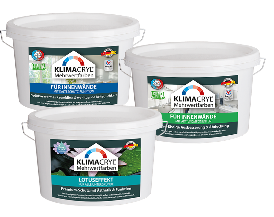 KLIMACRYL Innenfarben sorgen für ein harmonisches, ausgewogenes Raumklima und eine Oberfläche, die Schönheit und Funktion perfekt vereint. Die hochentwickelte Rezeptur reguliert Temperatur und Feuchtigkeit und schafft damit spürbaren Wohnkomfort – ästhetisch, langlebig und wohngesund.
